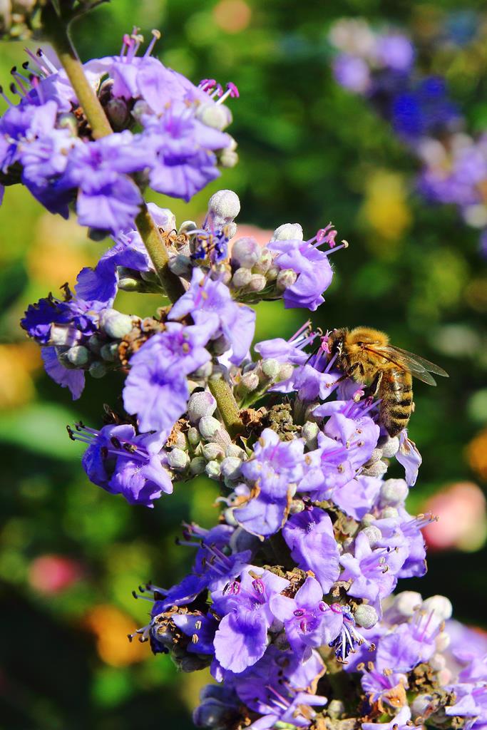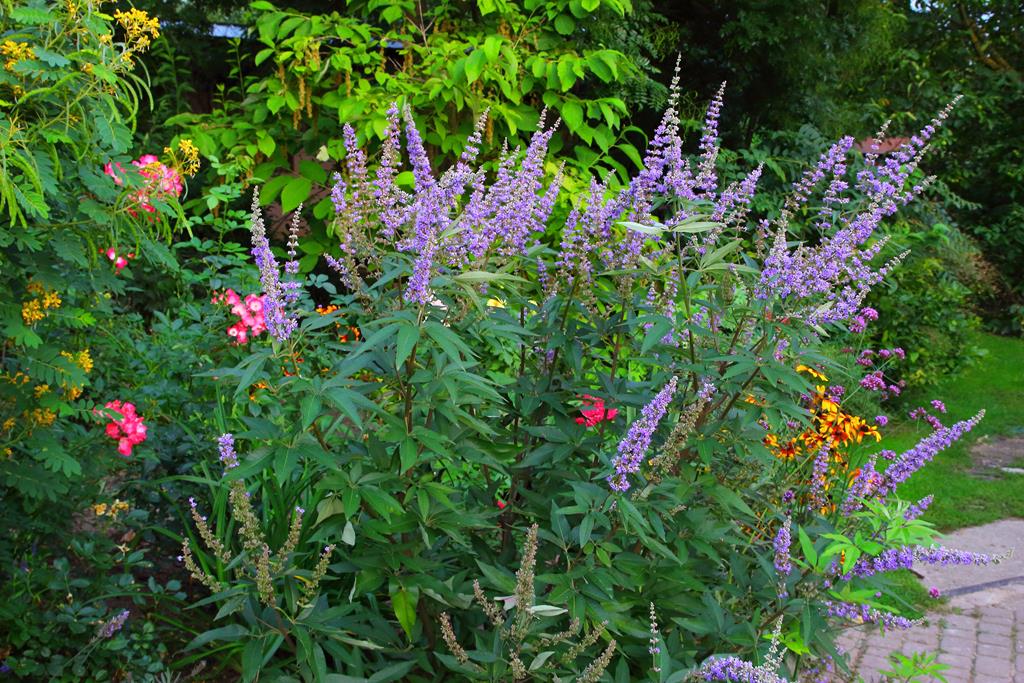 Opis. Gęsty, wyprostowany krzew o nieregularnym pokroju, dorastający w naszych warunkach do wysokości ok. 2 m. Liście lancetowate, dłoniasto złożone, ciemnozielone z górnej strony, srebrzyste od spodu. Kwiaty niebieskofioletowe, zebrane w długie, wąskie, wiechowate kwiatostany osadzone na szczytach pędów. Kwitnie w sierpniu. Owoce to kuliste, niewielkie pestkowce o korzennym smaku. Używane jako zamiennik pieprzu oraz surowiec zielarski.