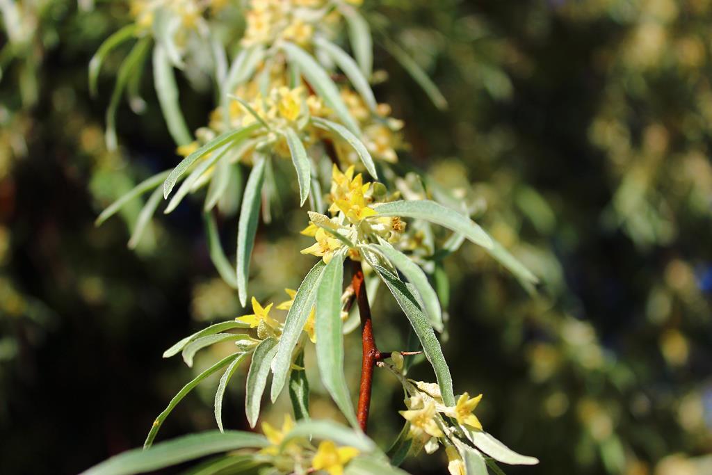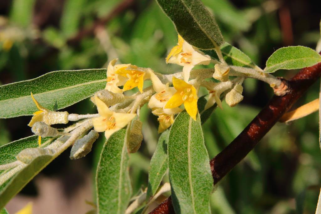 Opis. Niewielkie drzewo lub duży krzew, osiągający 6-8 m wysokości. Korona szeroka, nieregularna. Pędy pokryte ostrymi cierniami. Liście lancetowate, srebrzysto owłosione. Kwiaty żółte, niepozorne, przyjemnie pachnące. Kwitnie od końca maja do połowy czerwca. Owoce owalne, srebrzyste, do 1,5 cm długości.