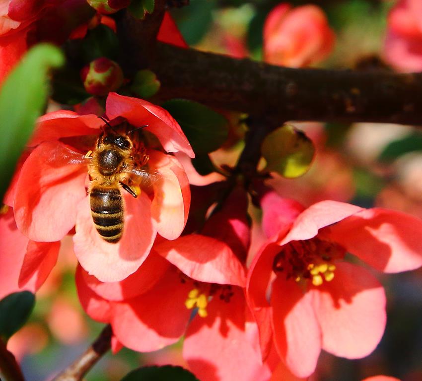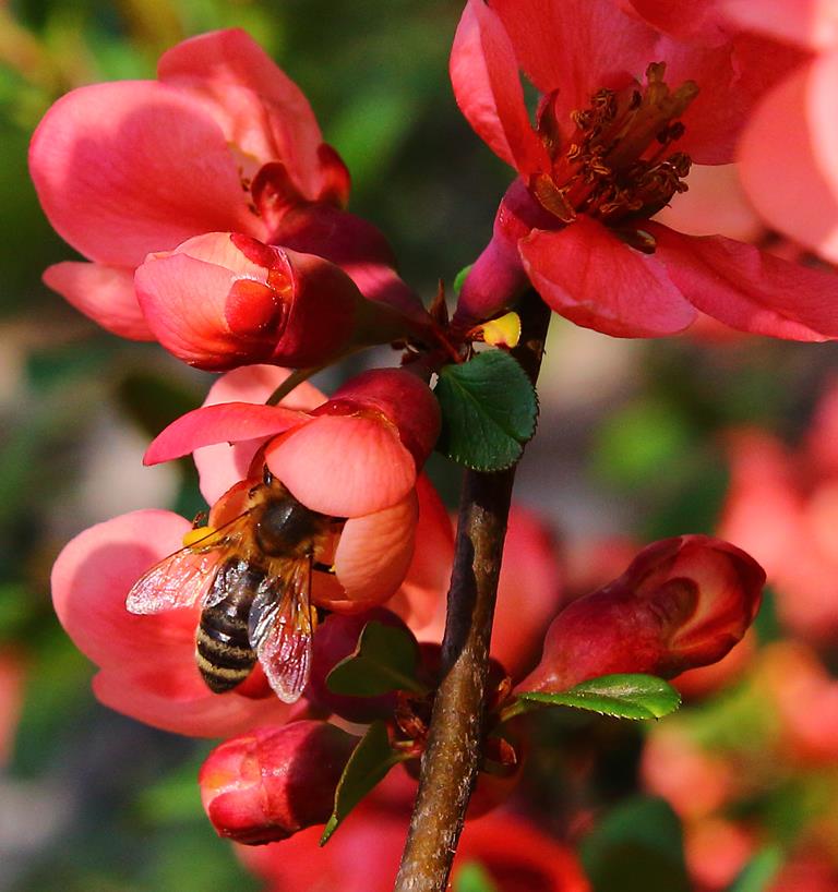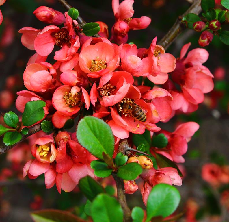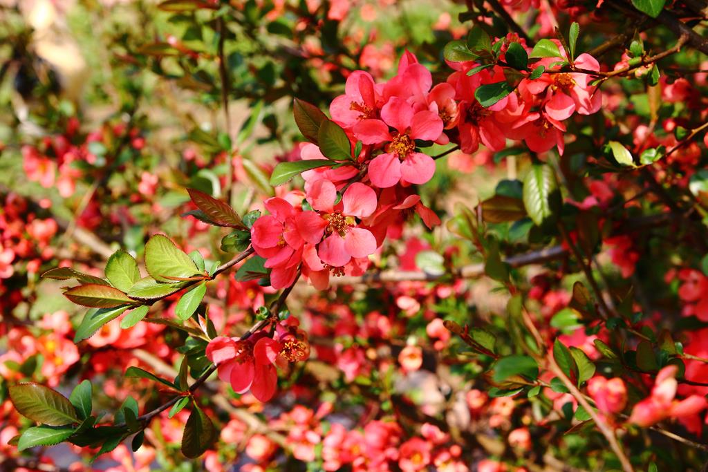 Opis. Rozłożysty krzew osiągający 2 m wysokości i podobną szerokość. Liście ciemnozielone, eliptyczne, błyszczące, pędy cierniste, splątane. Kwiaty czerwone, średnicy ok. 3 cm, zebrane po kilka sztuk na zeszłorocznych pędach. Kwitnie obficie pod koniec kwietnia i w maju przez 2-3 tygodnie. Często powtarza kwitnienie na przełomie lata i jesieni, ale dużo mniej obficie. Owoce żółte, kuliste, bardzo twarde, cierpkie.