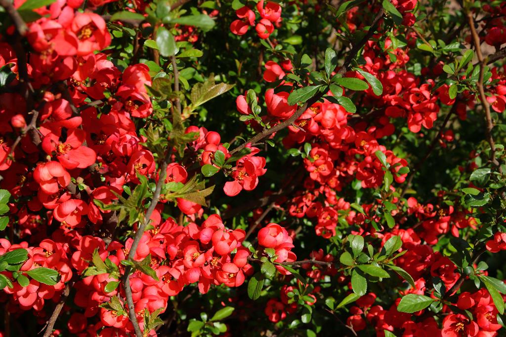 Opis. Niewysoki, rozłożysty krzew dorastający do 1,5 m wysokości. Pędy pokryte krótkimi cierniami. Liście ciemnozielone, jajowate, błyszczące. Kwitnie w kwietniu-maju. Kwiaty średnicy ok. 3 cm, ceglastoczerwone, bardzo liczne. Owoce zielonożółte, drobne, kuliste, dojrzewają we wrześniu.