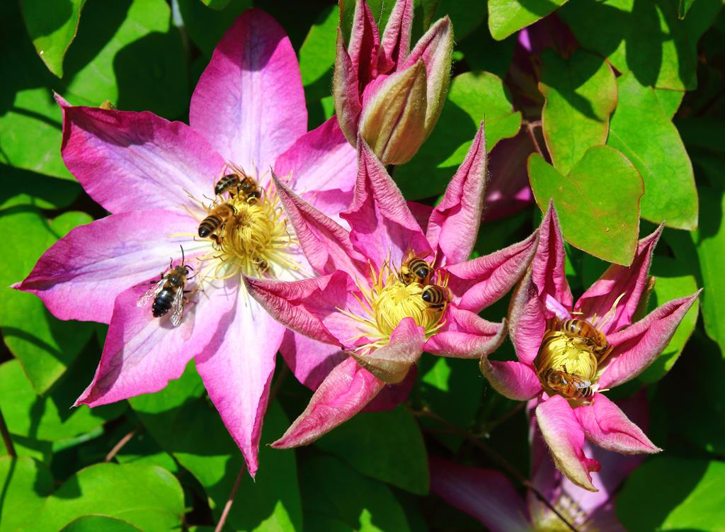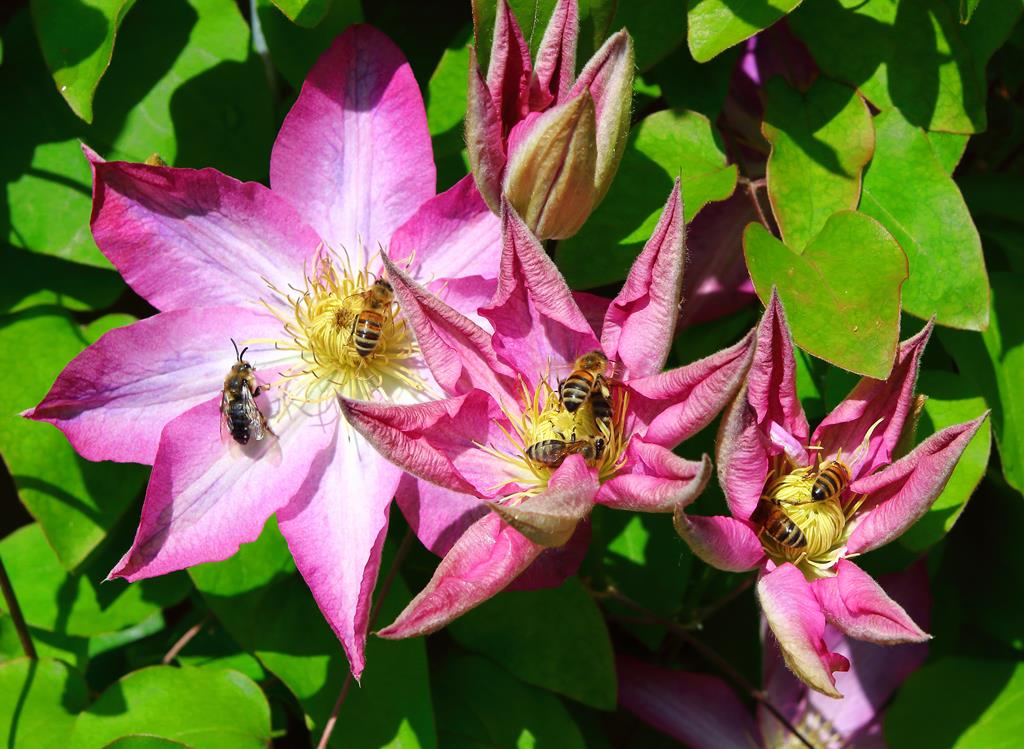 Opis. Powojnik wielkokwiatowy osiągający wysokość 2 m. Kwiaty różowe z rozjaśnieniem wzdłuż płatków, do 18 cm średnicy. Kwitnie bardzo obficie na pędach zeszłorocznych w maju, powtarza kwitnienie na pędach tegorocznych w sierpniu.