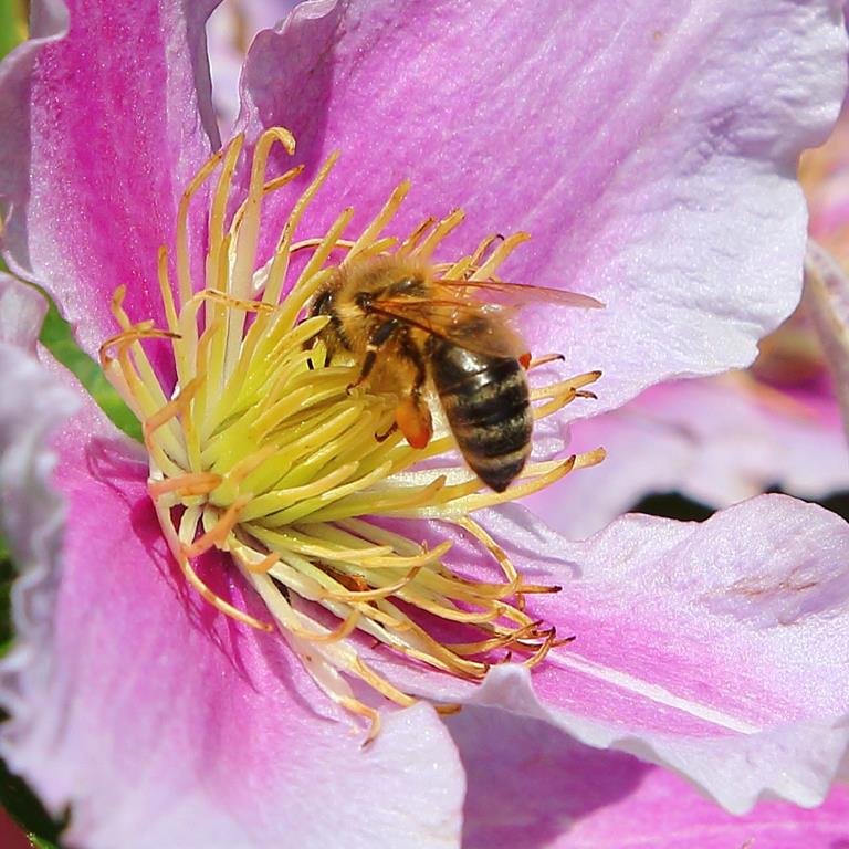 Opis. Powojnik osiągający wysokość 1,5 m. Liście pojedyncze i trójlistkowe. Kwiaty różowe z ciemnoróżową pręgą pośrodku, półpełne w czerwcu, pojedyncze w lipcu i sierpniu.
