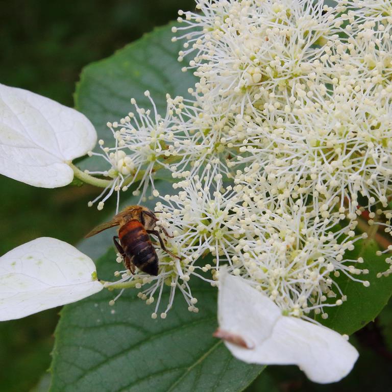 Opis. Wolno rosnące pnącze osiągające do 6 m wysokości. Liście srebrzystozielone, sercowate, grubo ząbkowane. Kwiaty białe, drobne, zebrane w płaskie kwiatostany śr. 25 cm. Kwitnie w lipcu.