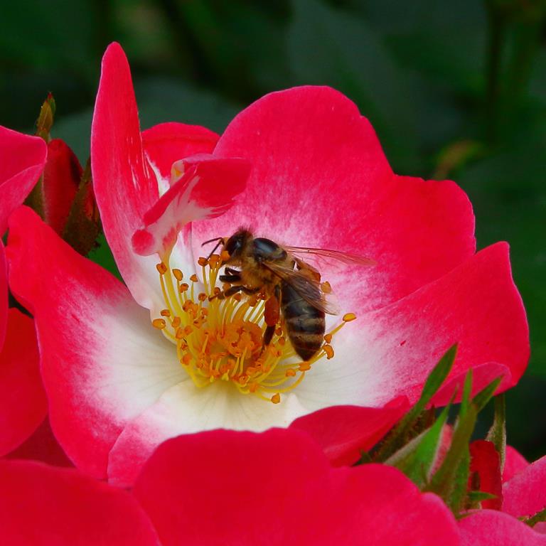 Kwiaty: czerwone z białym środkiem, pojedyncze, średnicy ok. 5 cm, zebrane w okazałe grona, VI-X