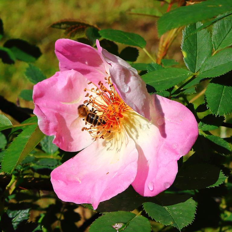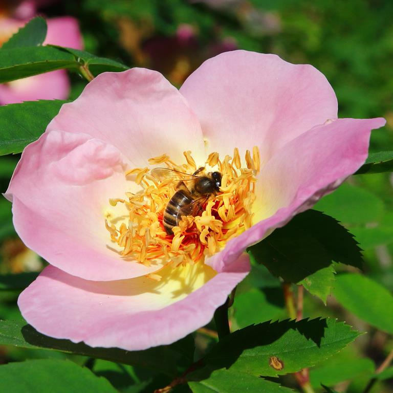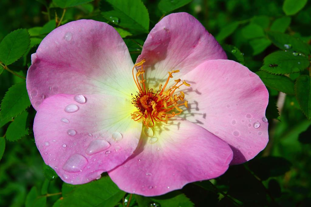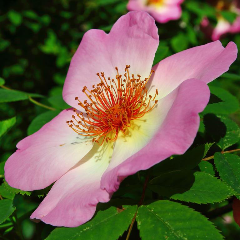 Kwiaty: różowe z jaśniejszym środkiem, pojedyncze, średnicy 10 cm, pachnące, VI
