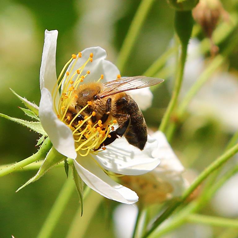Kwiaty: białe z żółtymi pylnikami, pojedyncze, średnicy 3-4 cm, zebrane w duże kwiatostany, VI