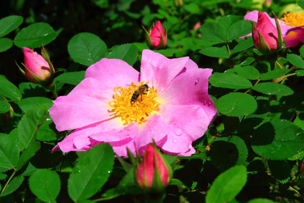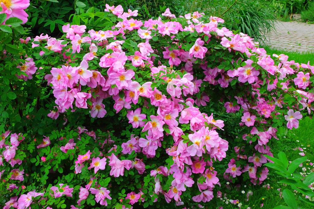 Kwiaty: różowe, pojedyncze, lekko pachnące, ok. 10 cm średnicy, V,VIII