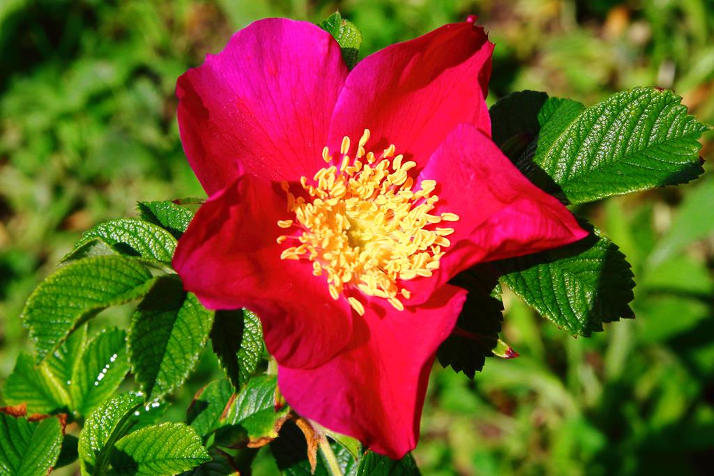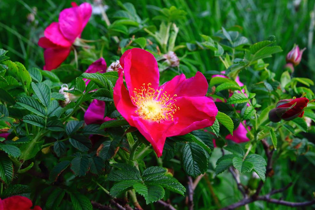 Kwiaty: czerwone, pojedyncze, pachnące, 6-8 cm średnicy, VI-X