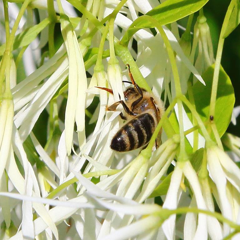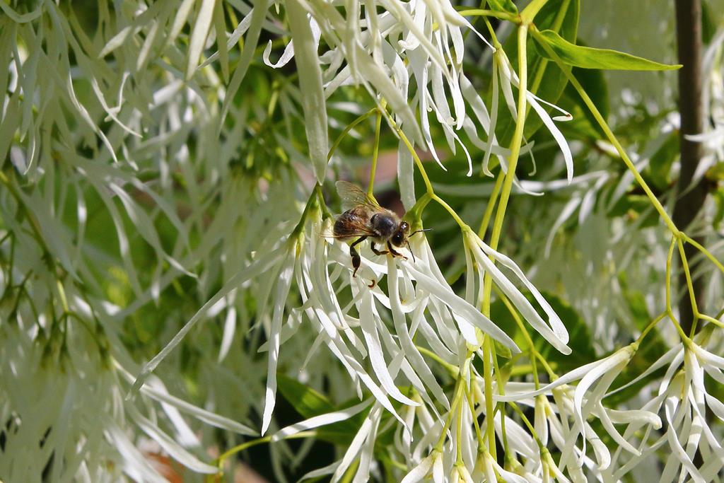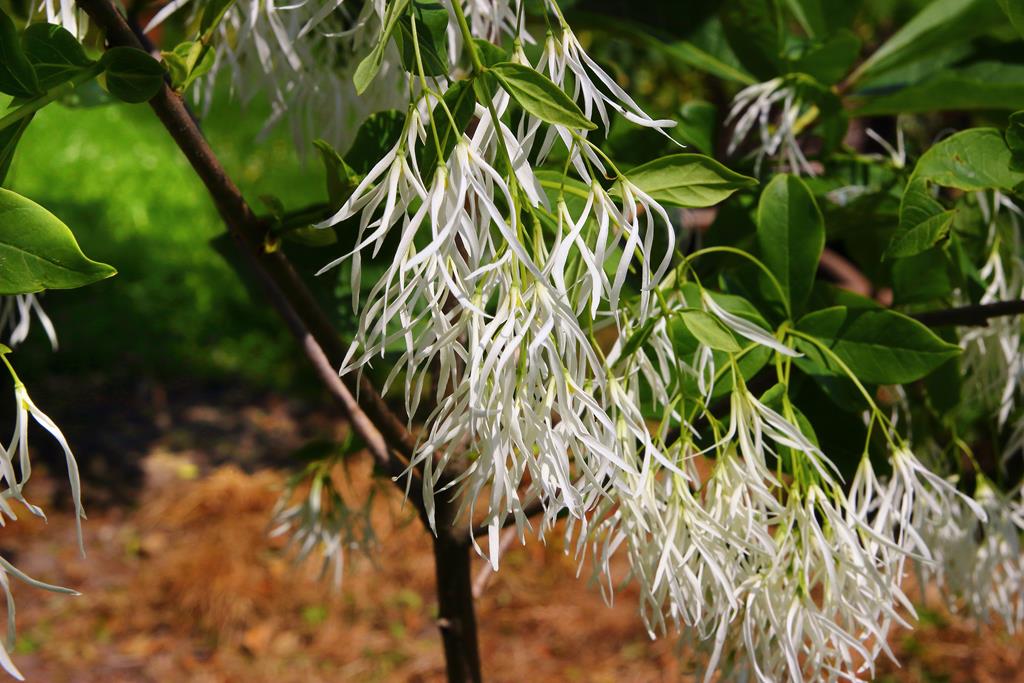 Opis. Niskie drzewo wysokości do 4-5 m. Pokrój szeroki, kulisty. Liście wąsko owalne o ostrym końcu, zielone, żółknące jesienią. Kwiaty białe, frędzelkowate, zebrane w zwisające wiechy do 20 cm długości. Kwitnie na przełomie maja i czerwca. Owoce fioletowe, podłużne, o długości ok. 2 cm.