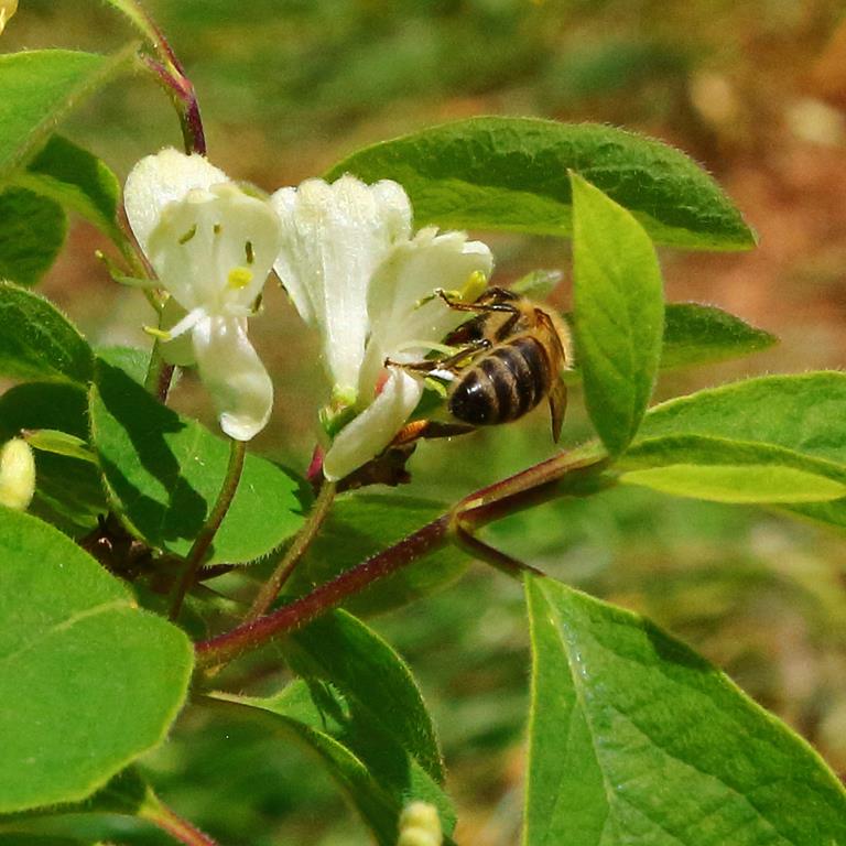 Opis. Krzew dorastający do 2 m wysokości, o gęstej, zaokrąglonej koronie. Liście jajowate, zielononiebieskie. Kwiaty długości do 1,5 cm, kremowobiałe, żółknące podczas przekwitania. Zakwita w końcu maja. Owoce czerwone, kuliste, dojrzewające w lipcu.