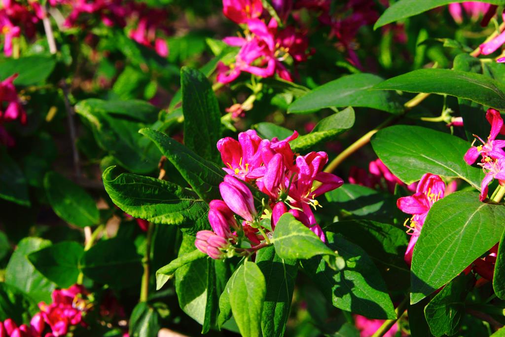 Opis. Krzew dorastający do 2 m wysokości i podobnej szerokości. Liście jajowate, niebieskozielone, dł. około 3 cm. Kwiaty rurkowate, różowe, pachnące. Kwitnie na przełomie maja i czerwca. Owoce czerwonopomarańczowe, błyszczące, dekoracyjne.
