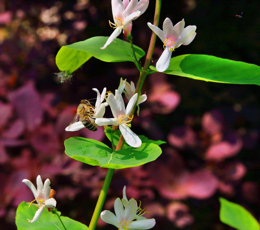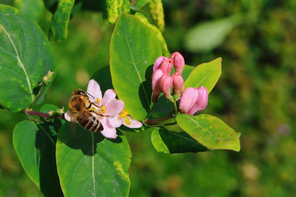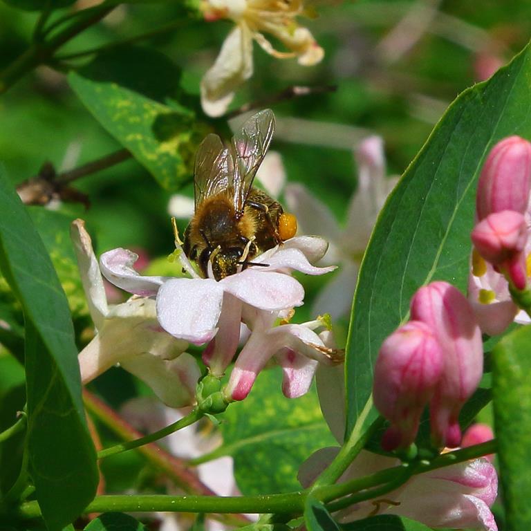 Opis. Rozłożysty, gęsty krzew dorastający do 4 m wysokości. Liście sinozielone, jajowate, do 7 cm długości. Kwiaty jasnoróżowe lub białe, do 2 cm długości. Kwitnie bardzo obficie w maju. Owoce niewielkie, kuliste, czerwone, dojrzewają w lipcu i sierpniu.