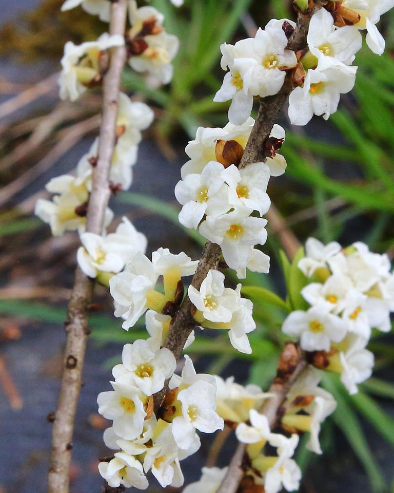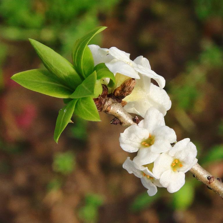 Opis. Forma o białych kwiatach i żółtych owocach. Pokrój zwarty, osiąga 1 m wysokości. Kwiaty bardzo liczne, silnie pachnące. Kwitnie marzec-kwiecień. Owoce kuliste, silnie trujące.