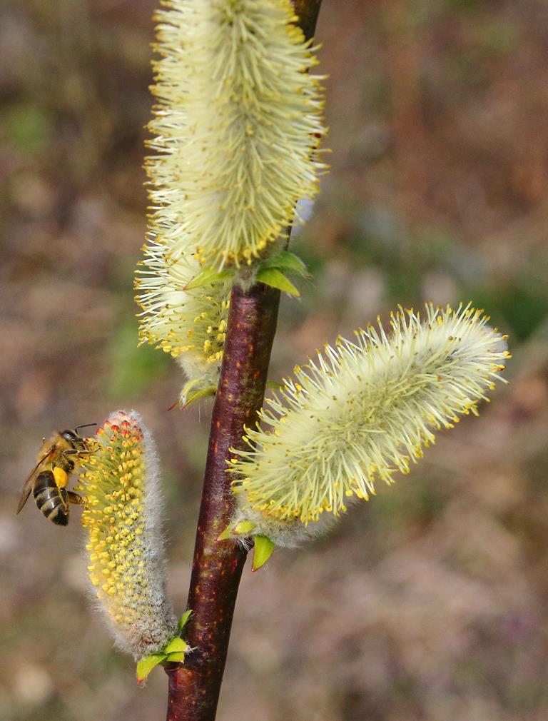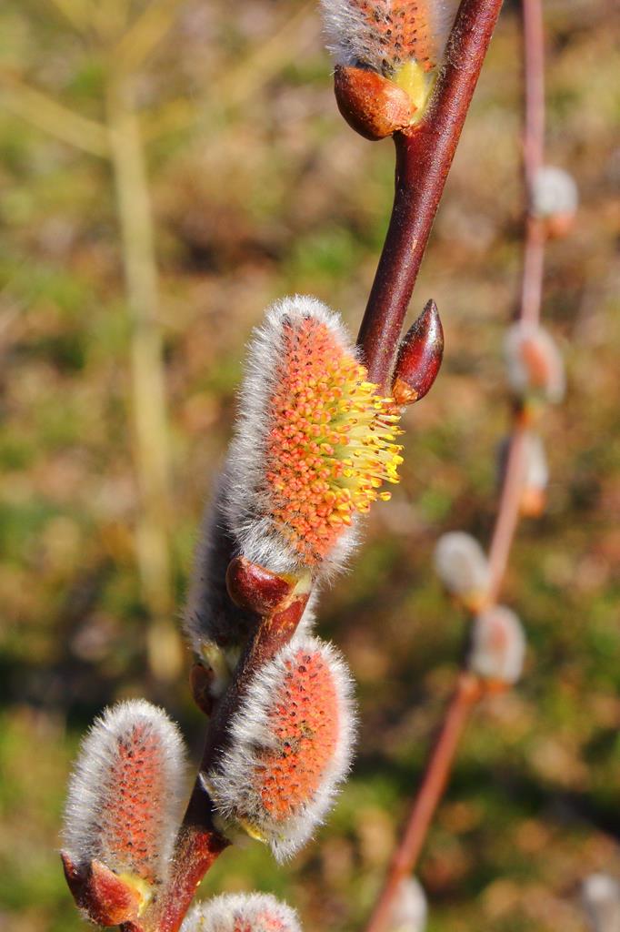 Opis. Wysoki krzew lub średniej wielkości drzewo. Pędy wyprostowane, sztywne, szarobrązowe, liście owalno-lancetowate. Bazie duże, srebrzyste, w czasie kwitnienia żółte. Kwitnie na przełomie marca i kwietnia przed rozwojem liści. Klon męski.