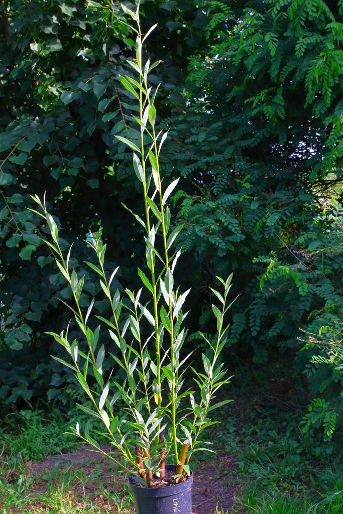 Opis. Dorasta do 8 m wysokości. Pędy wyprostowane, czerwono zabarwione. Liście jajowato-lancetowate. Bazie koloru żółtego, liczne, kwitnie marzec-kwiecień. Klon męski.