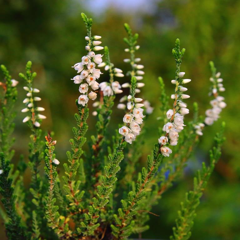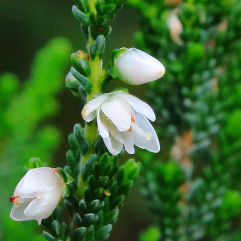 Opis. Zimozielona, wolno rosnąca krzewinka dorastająca do 0,5 m wysokości. Liście ciemnozielone, łuskowate, do 2 mm długości. Kwiaty białe, dzwonkowate, pojedyncze, osadzone w kątach liści wzdłuż wyprostowanych tegorocznych pędów. Kwitnie od początku sierpnia do końca września.