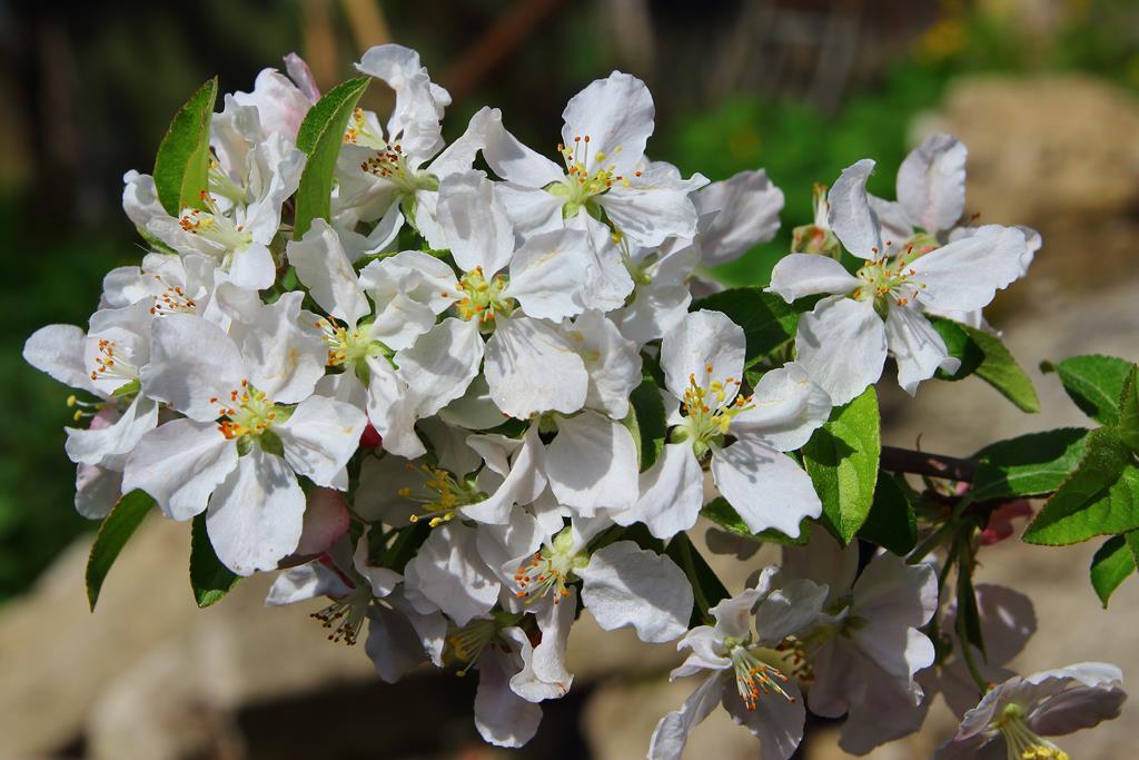 Opis. Niskie drzewo lub duży krzew dorastający do 5 m wysokości. Korona luźna, gałęzie wyprostowane. Kwiaty w pąku różowe, po rozwinięciu białe. Kwitnie bardzo obficie w maju. Owoce żółte, kuliste, bardzo liczne. Odmiana odporna na parcha.